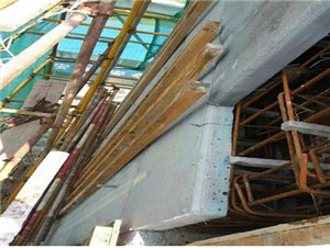 〈11〉混凝土澆注:混凝土澆注應用II型鍍鋅鐵皮扣在ZTM免拆外模板上口形成保護帽。混凝土坍落度應符合泵送混凝土對流動性的要求。